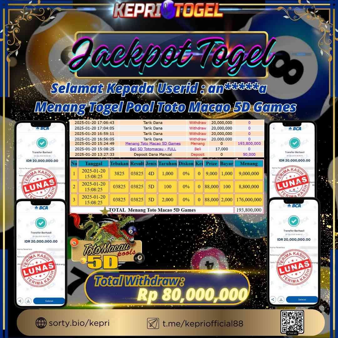 Kepritogel Jackpot Togel Toto Macao 5D Rp80,000,000