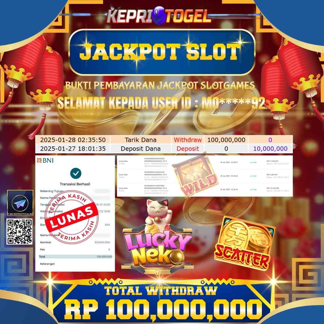 Kepritogel Jackpot Slot Lucky Neko Rp100,000,000