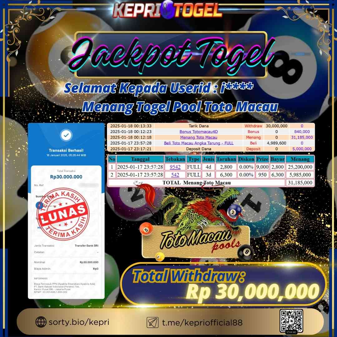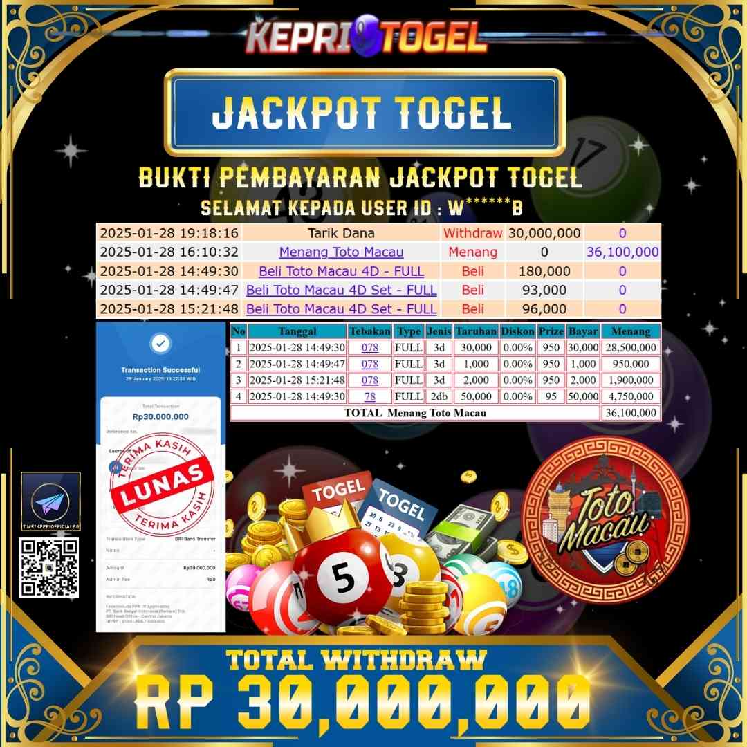Kepritogel Jackpot Togel Toto Macau Rp30,000,000