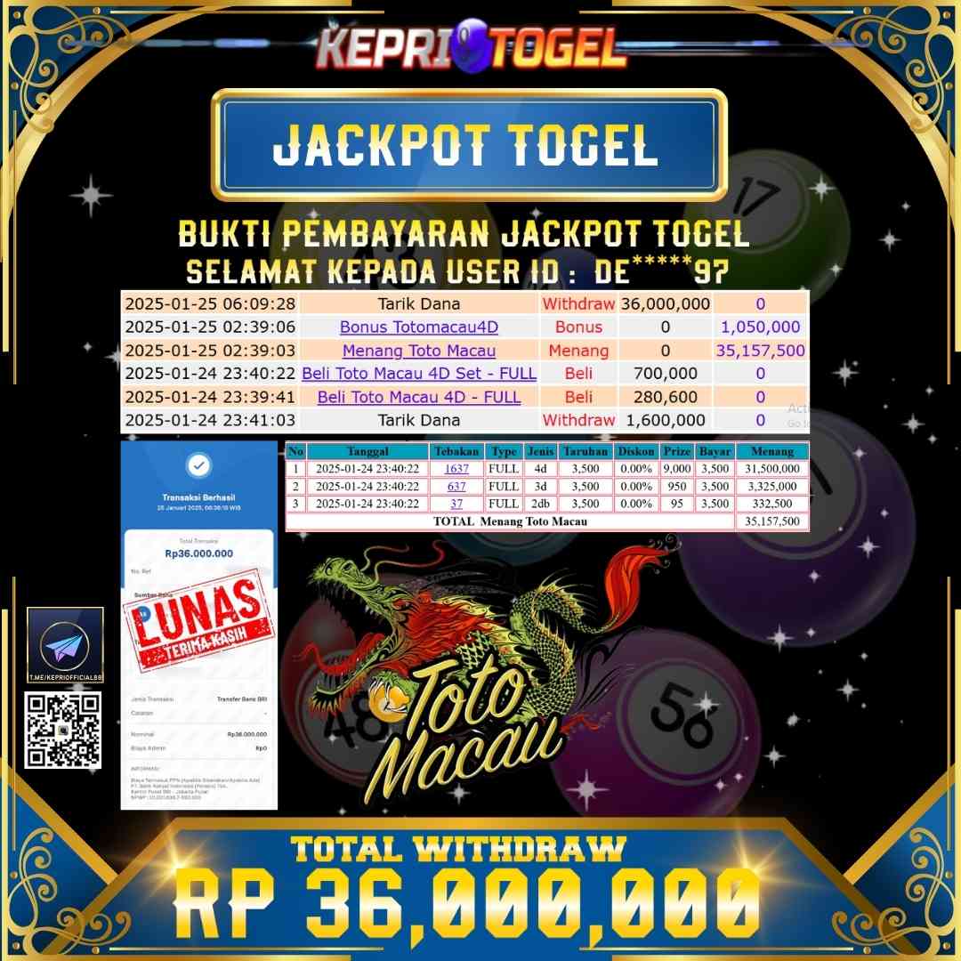 Kepritogel Jackpot Togel Toto Macau Rp36,000,000