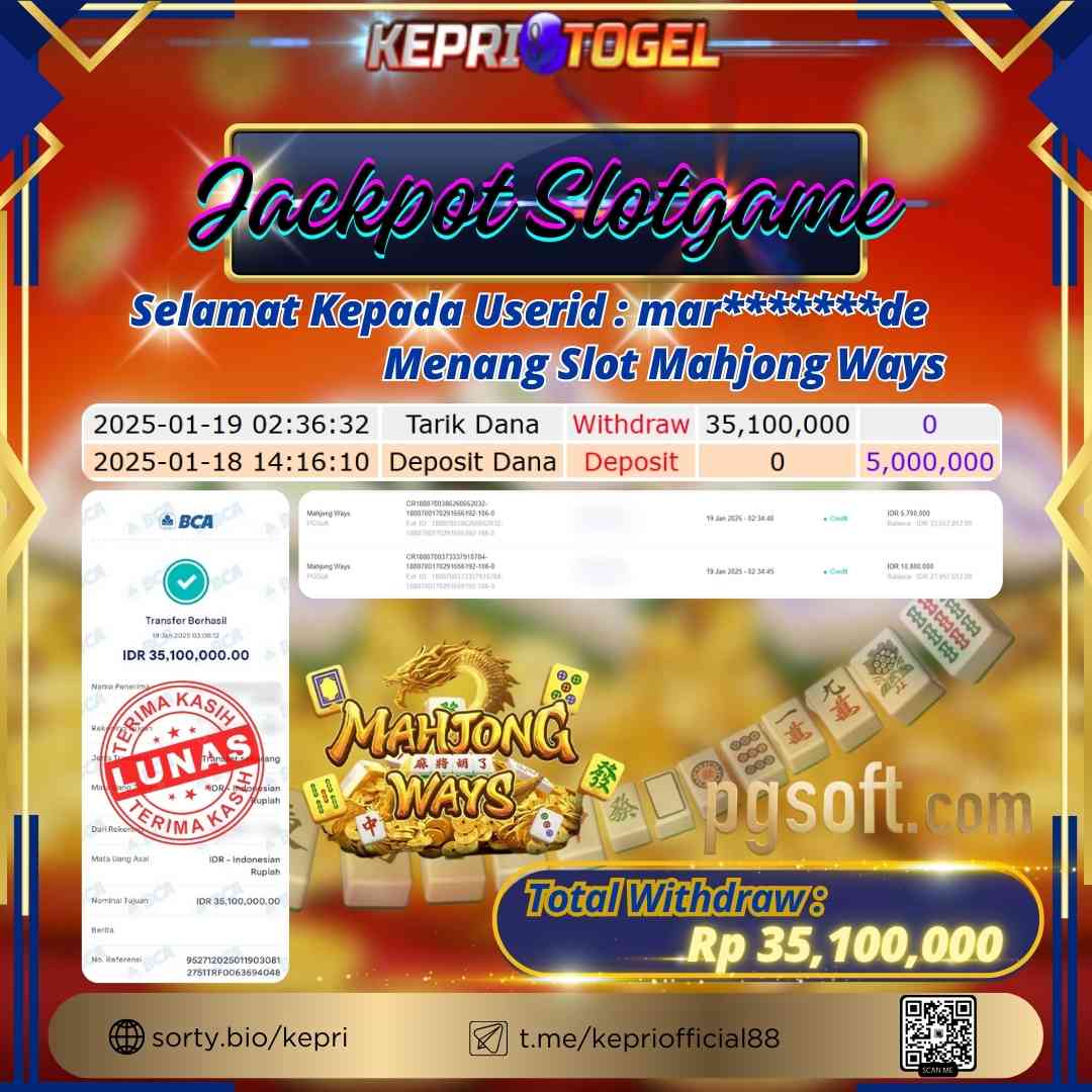 Kepritogel Jackpot Slot Mahjong Ways Rp35,100,000
