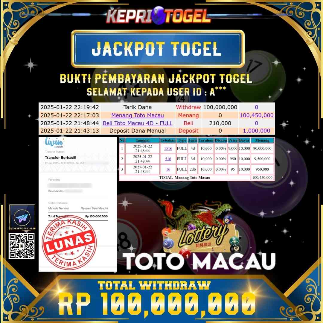 Kepritogel Jackpot Togel Toto Macau Rp100,000,000