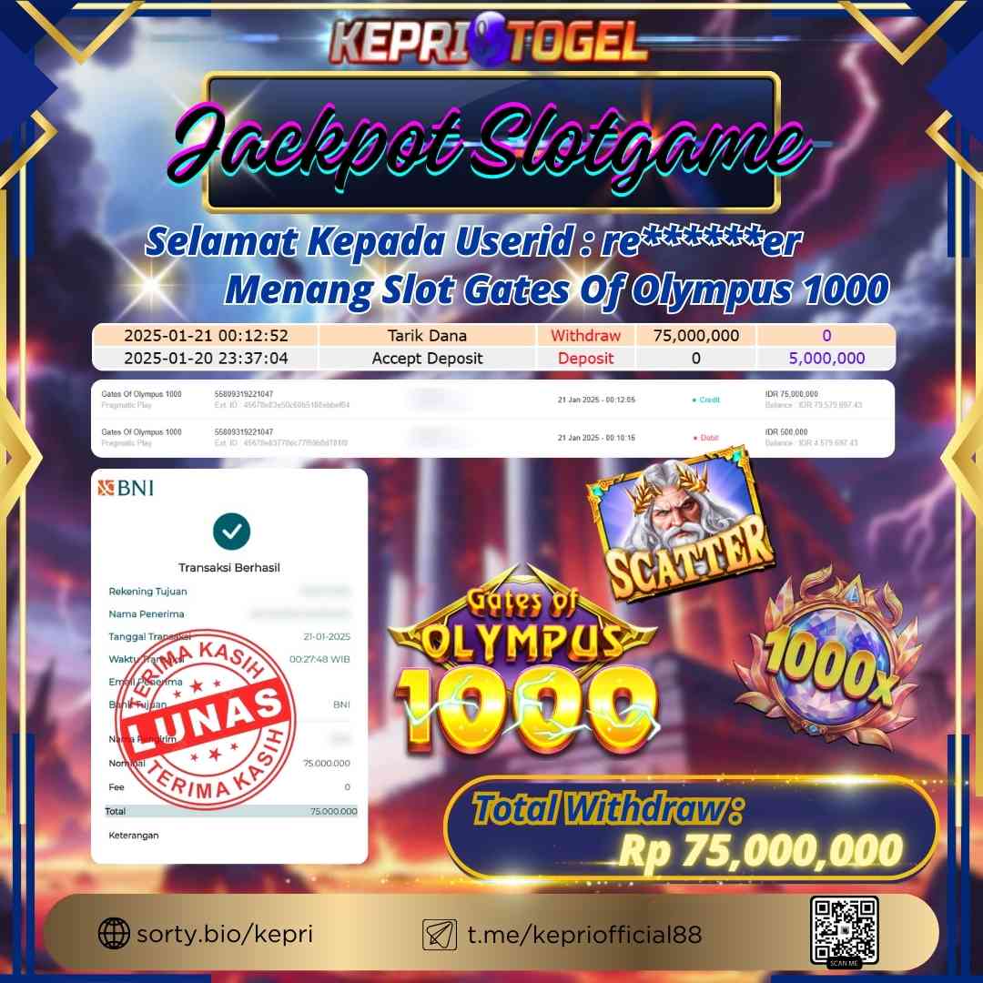 Kepritogel Jackpot Slot Gates Of Olympus 1000 Rp75,000,000