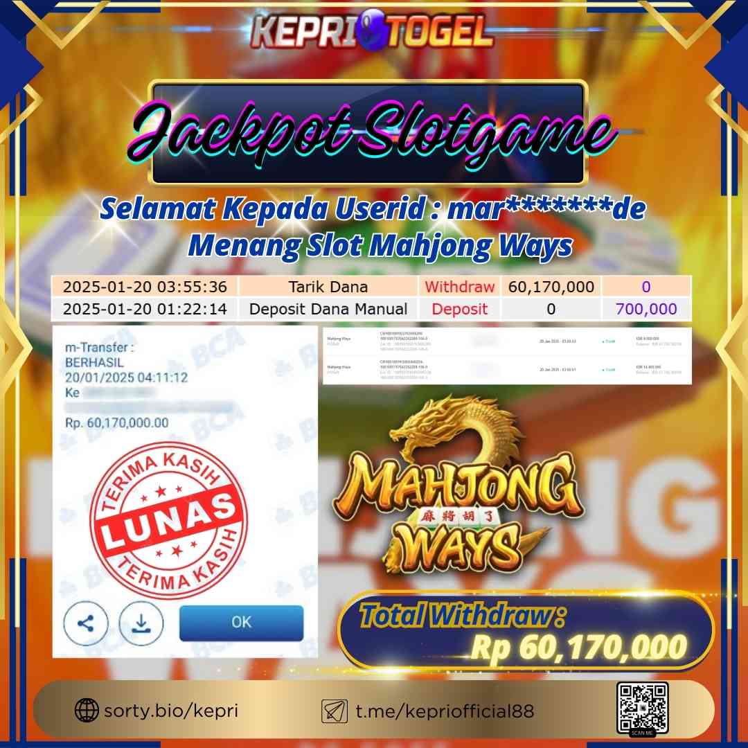 Kepritogel Jackpot Slot Mahjong Ways Rp60,170,000