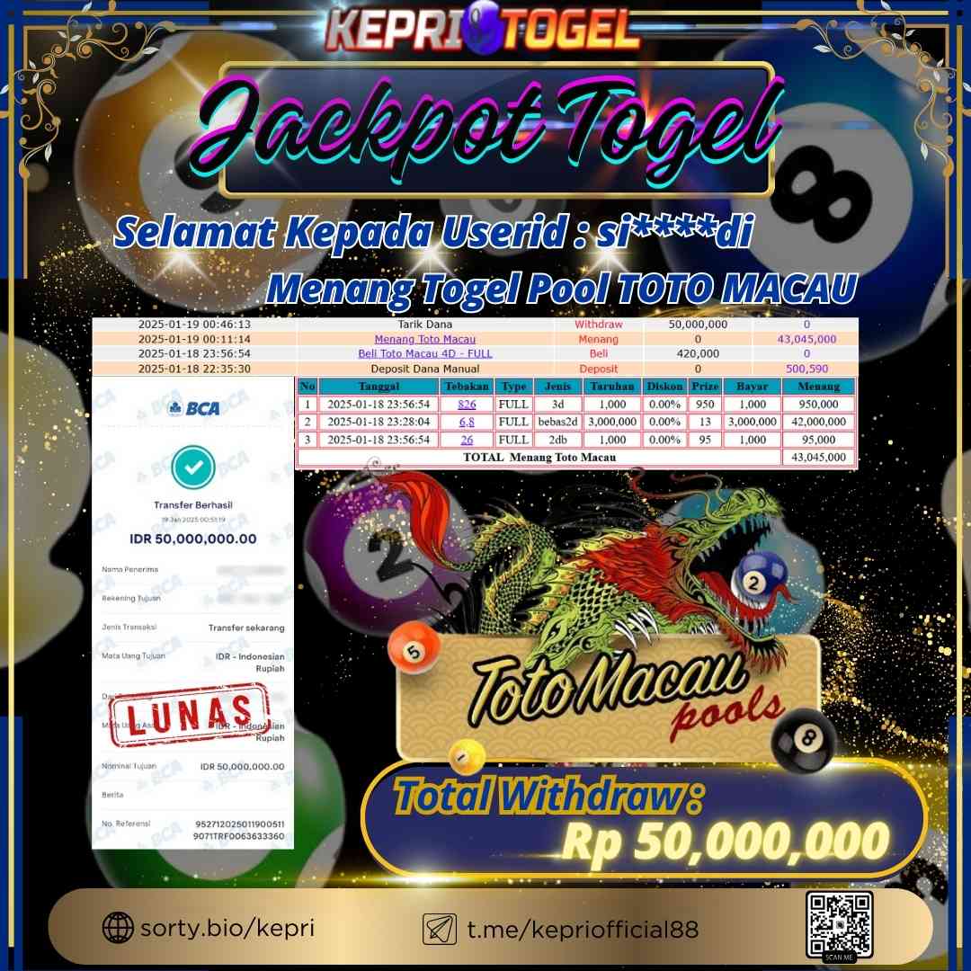 Kepritogel Jackpot Togel Toto Macau Rp50,000,000