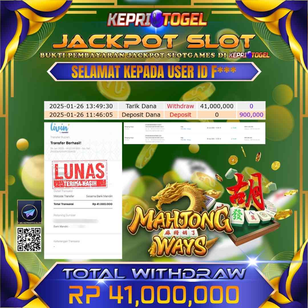 Kepritogel Jackpot Slot Mahjong Ways Rp41,000,000