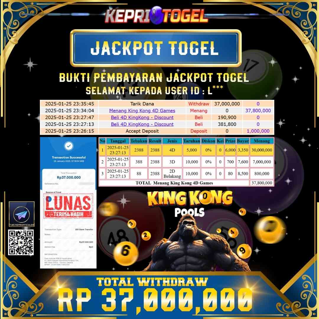 Kepritogel Jackpot Togel KINGKONG POLLS Rp37,000,000