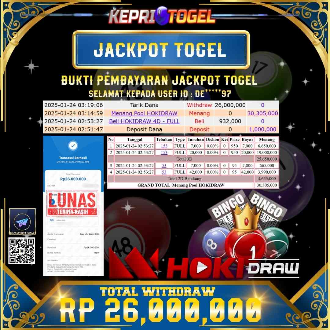 Kepritogel Jackpot Togel HOKIDRAW Rp26,000,000