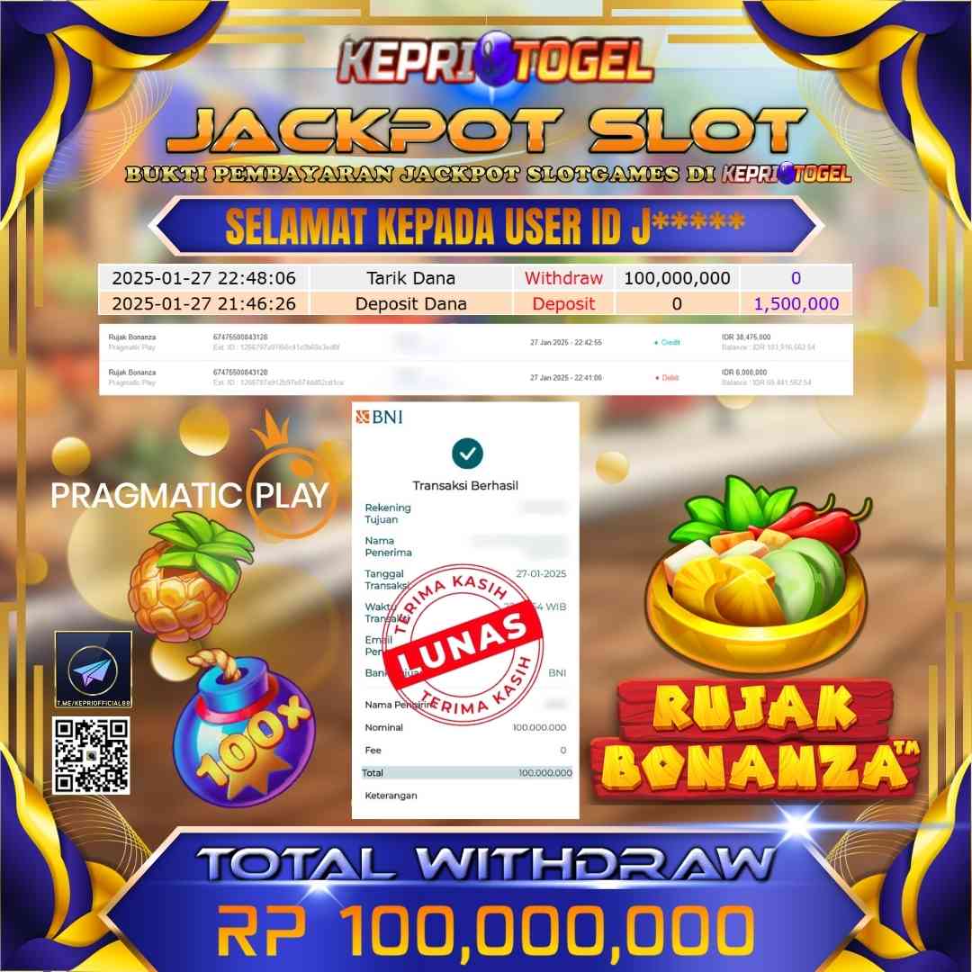 Kepritogel Jackpot Slot Rujak Bonanza Rp100,000,000