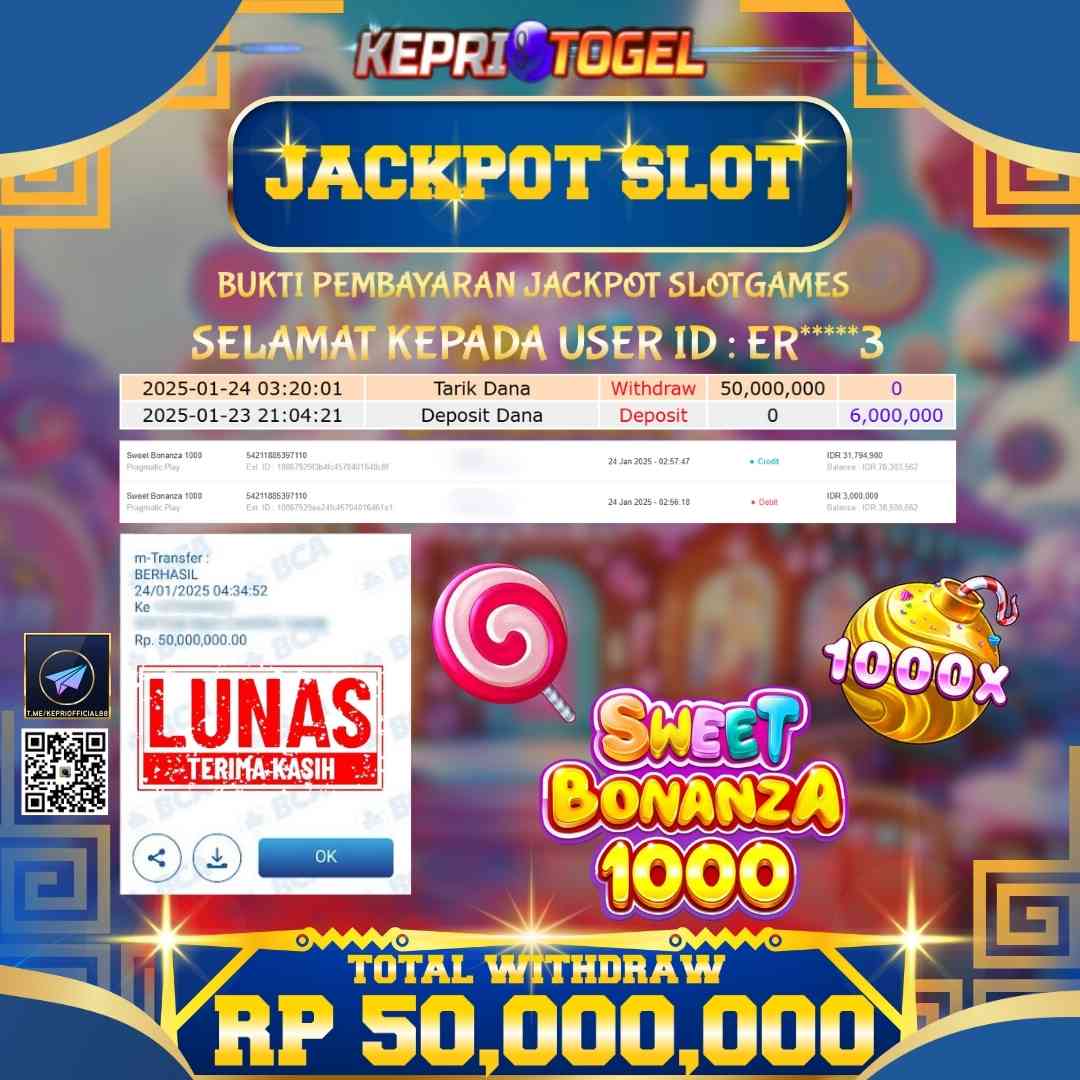 Kepritogel Jackpot Slot Sweet Bonanza 1000 Rp50,000,000