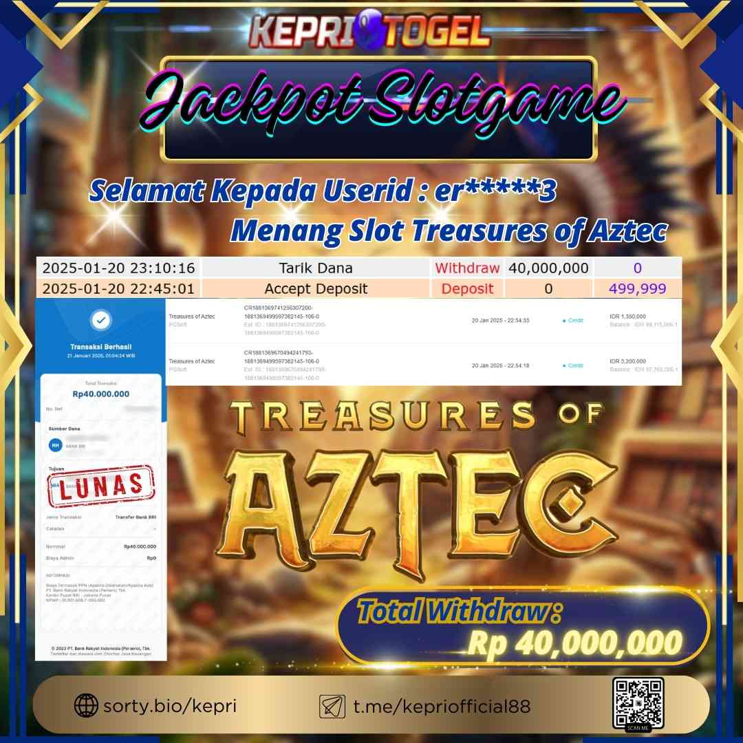 Kepritogel Jackpot Slot Game Treasures of Aztec Rp40,000,000