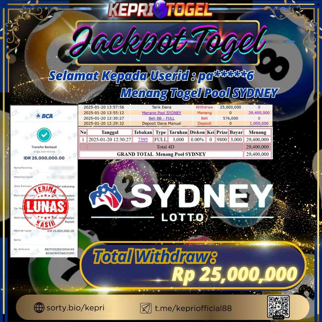 Kepritogel Jackpot Togel SYDNEY LOTTO Rp25,000,000