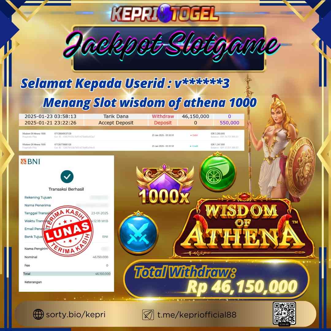 Kepritogel Jackpot Slot Game wisdom of athena 1000 Rp46,150,000
