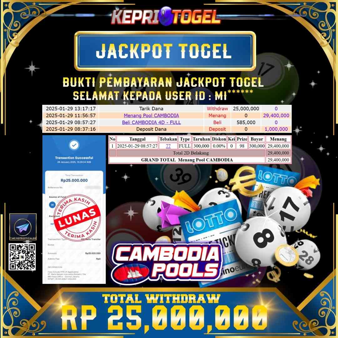 Kepritogel Jackpot Togel CAMBODIA Rp25,000,000