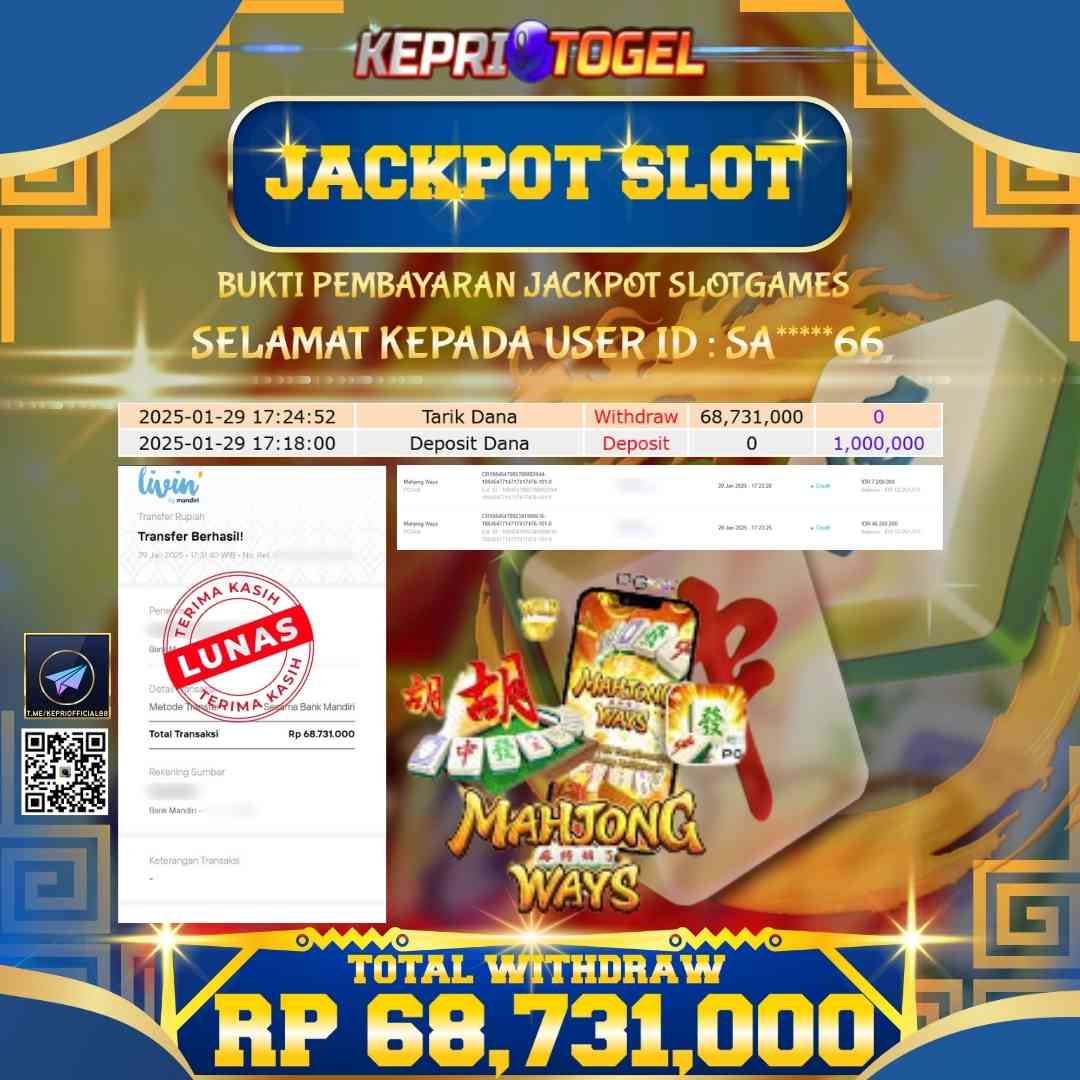 Kepritogel Jackpot Slot Mahjong Ways Rp68,731,000