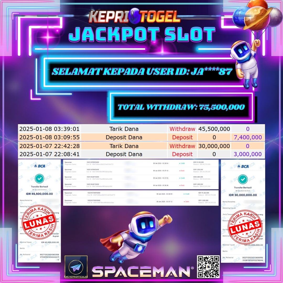 Kepritogel Jackpot Slot Game SPACEMAN Rp75,500,000