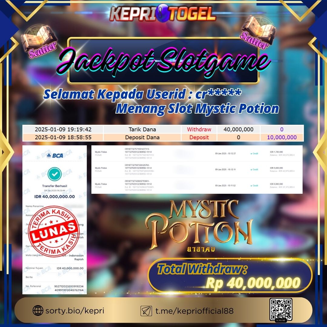 Kepritogel Jackpot Slot Mystic Potion Rp40,000,000