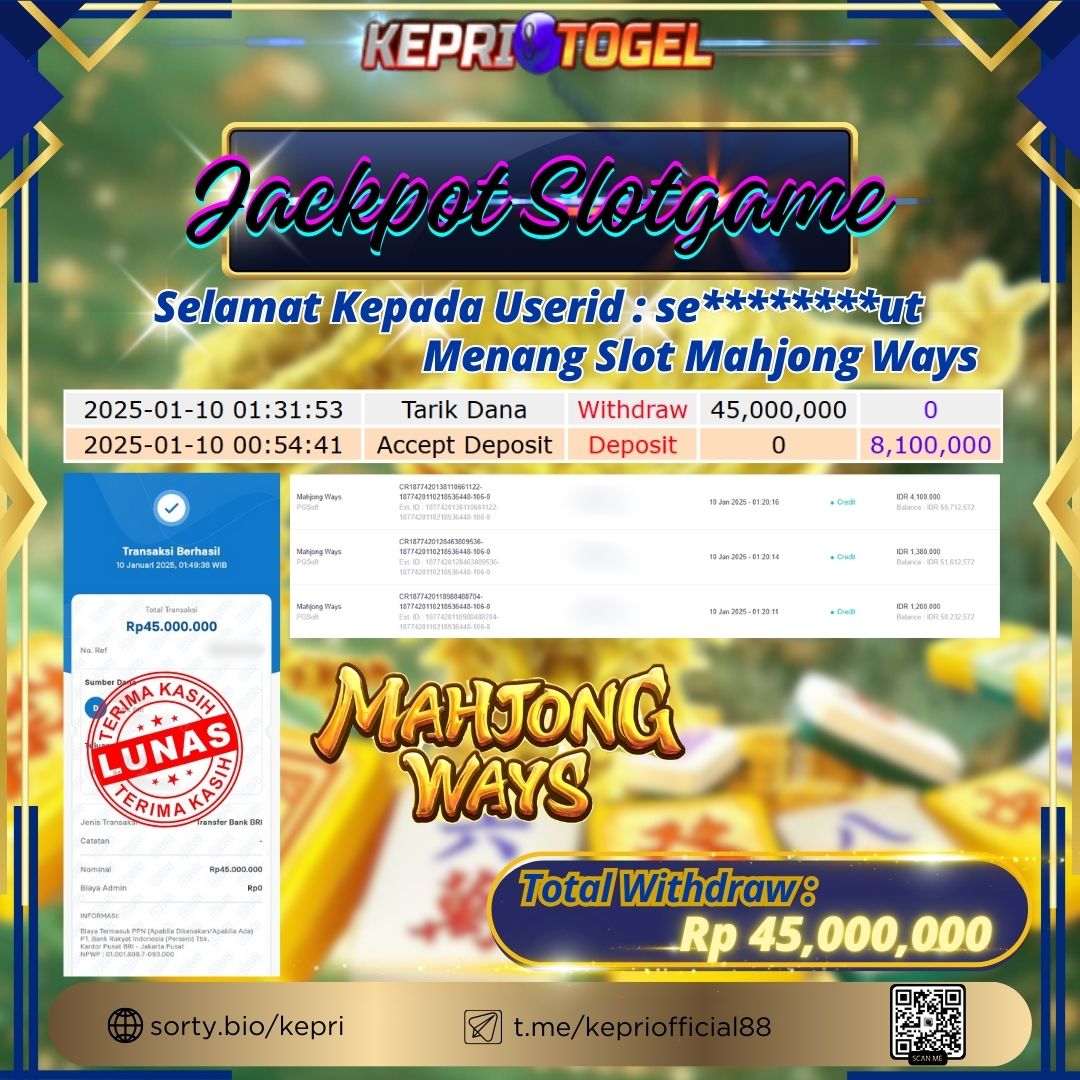 Kepritogel Jackpot Slot Mahjong Ways Rp45,000,000
