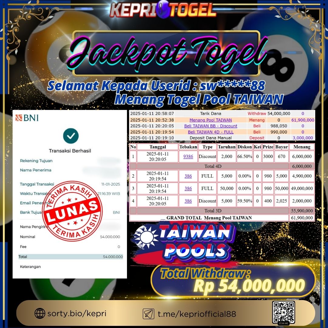 Kepritogel Jackpot Togel TAIWAN Rp54,000,000
