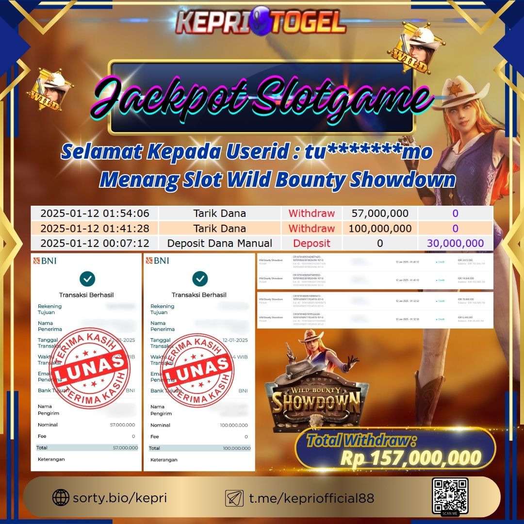 Kepritogel Jackpot Slot Wild Bounty Showdown Rp157,000,000
