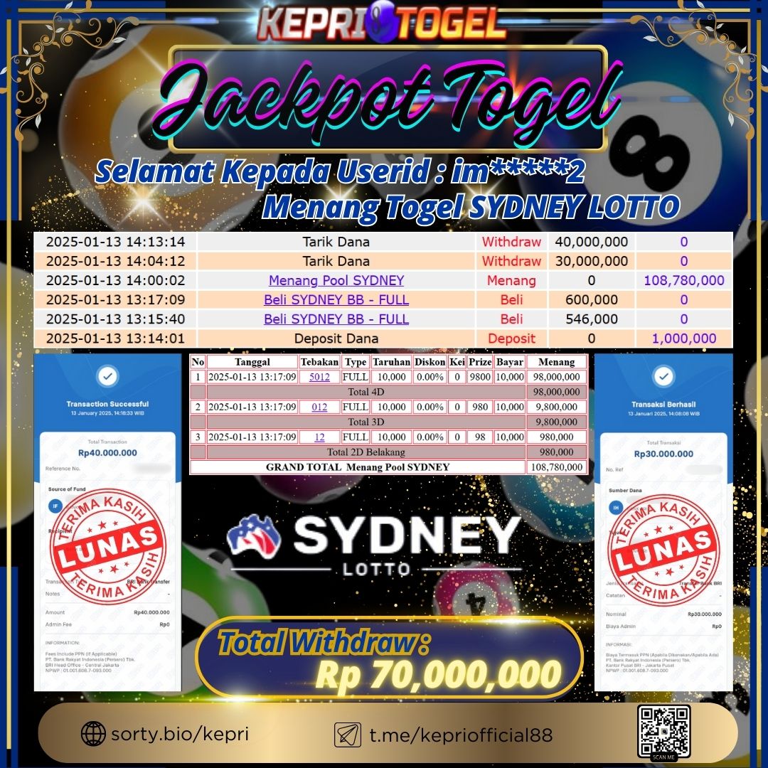 Kepritogel Jackpot Togel SYDNEY LOTTO Rp70,000,000