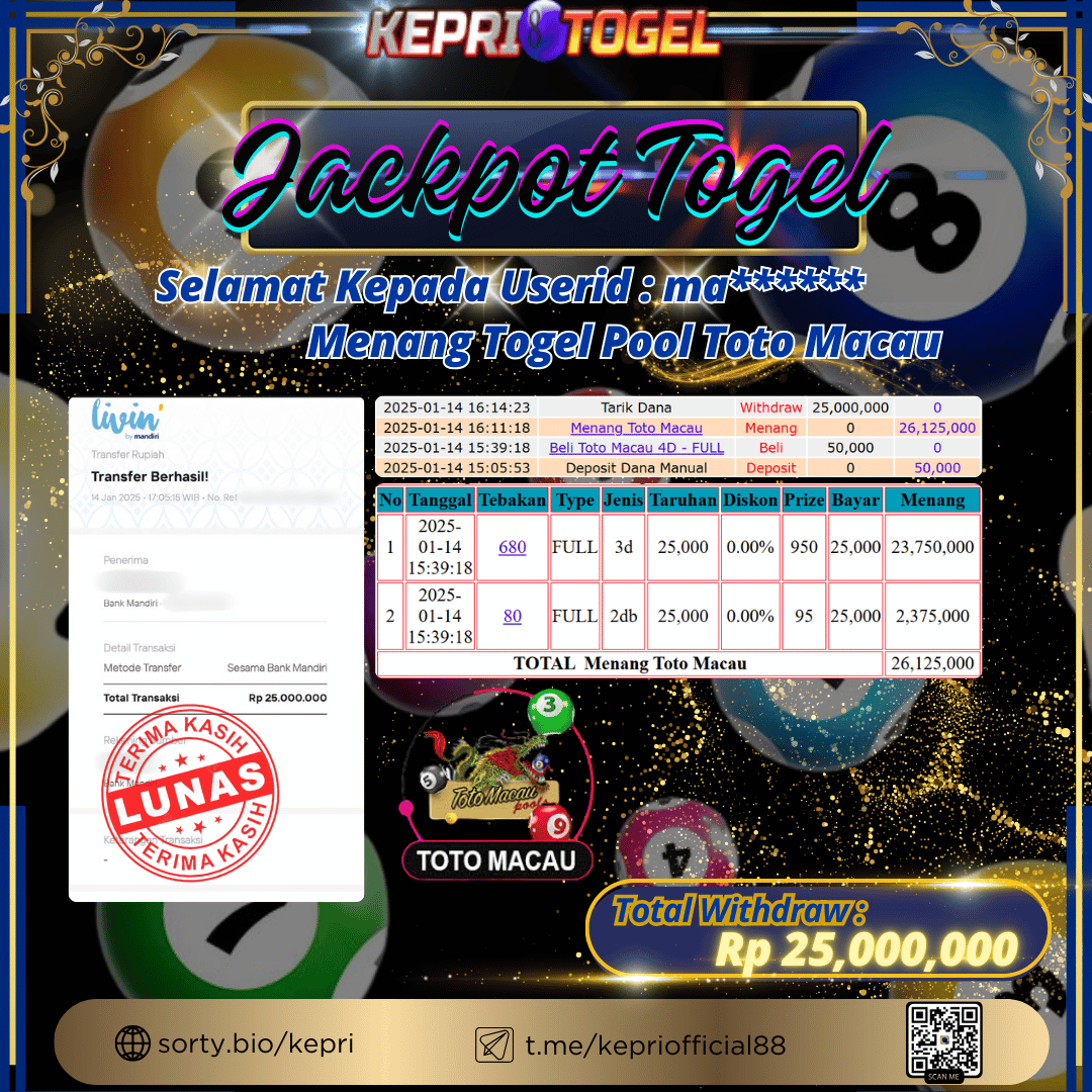 Kepritogel Jackpot Togel Toto Macau Rp25,000,000