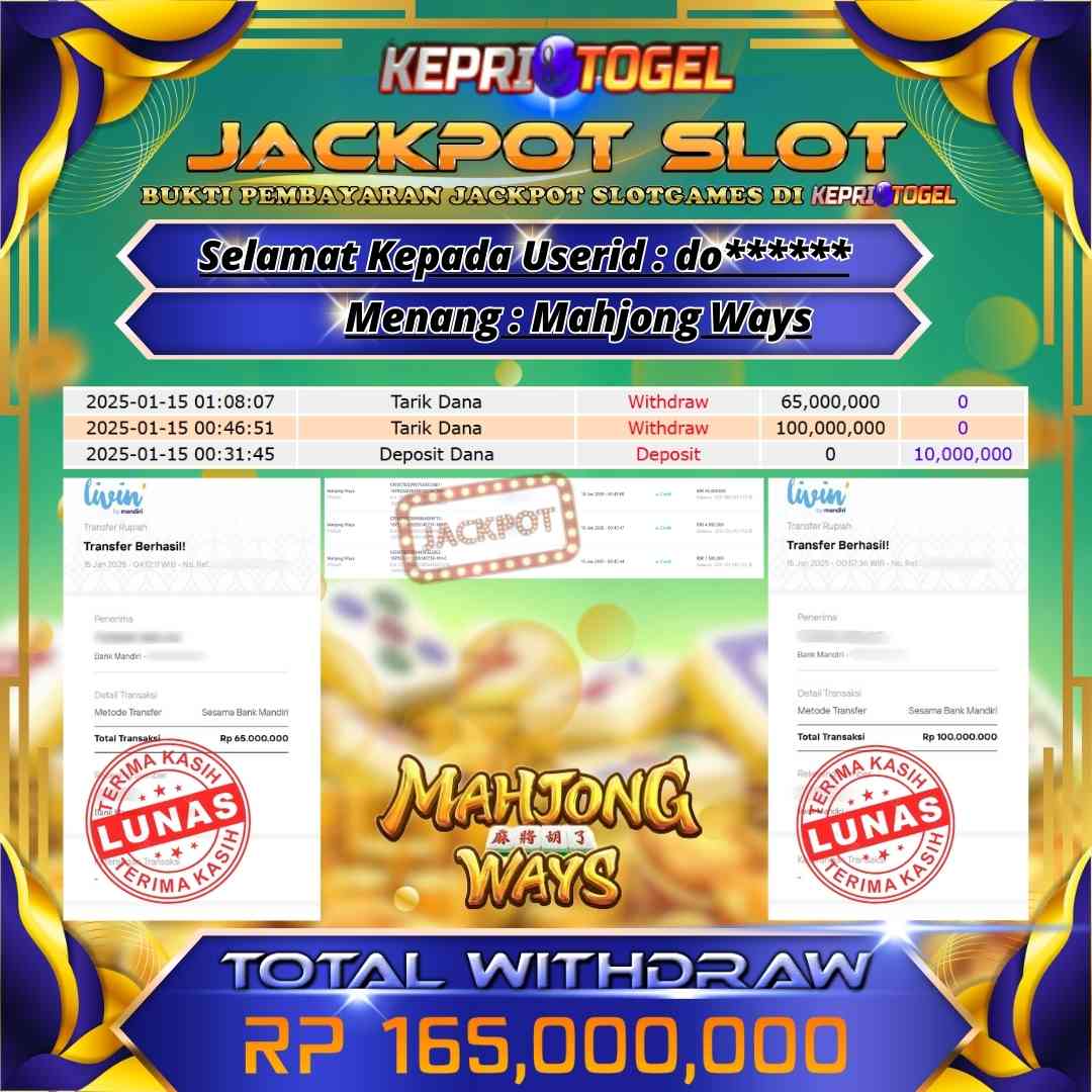Kepritogel Jackpot Slot Mahjong Ways Rp165,000,000