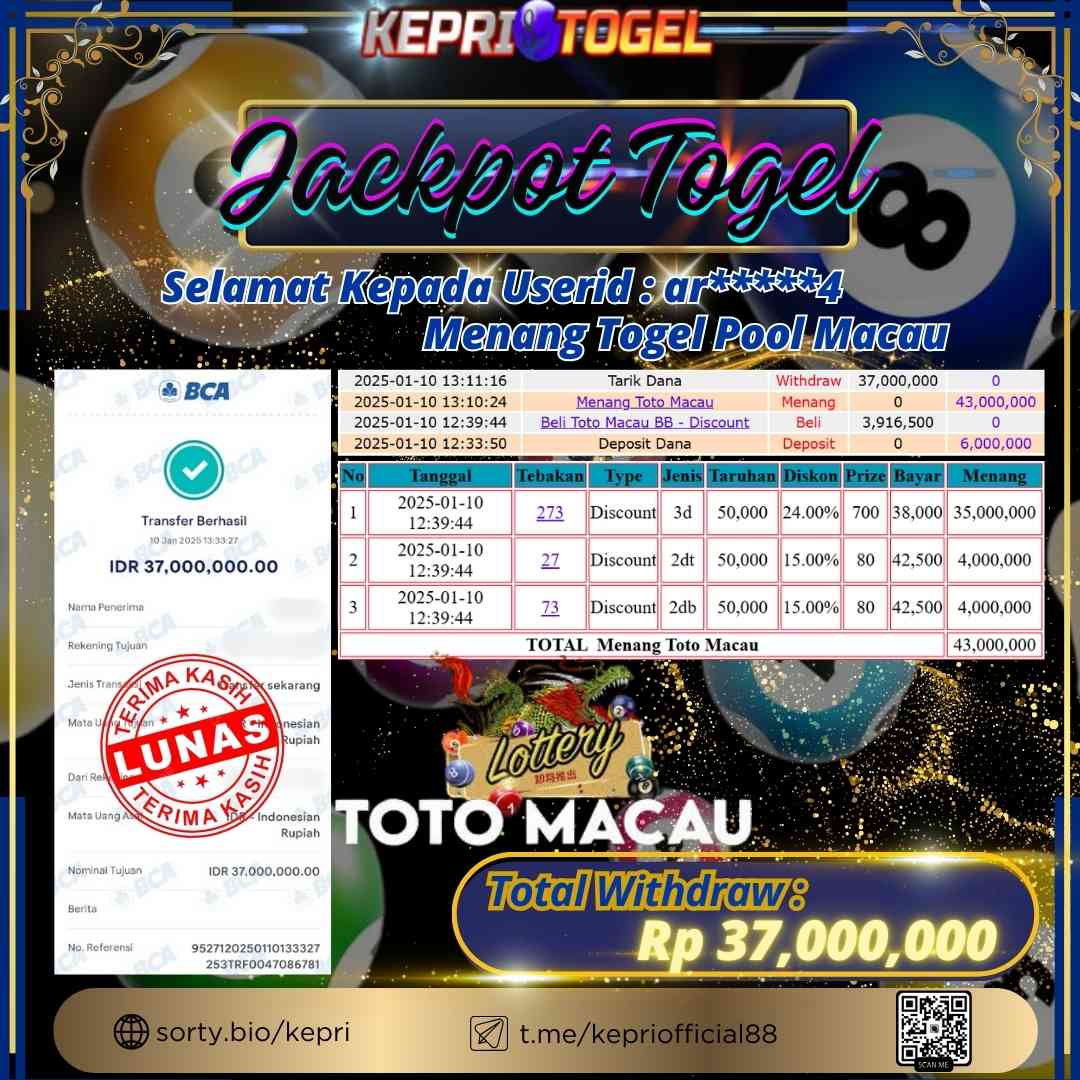 Kepritogel Jackpot Togel Toto Macau Rp37,000,000