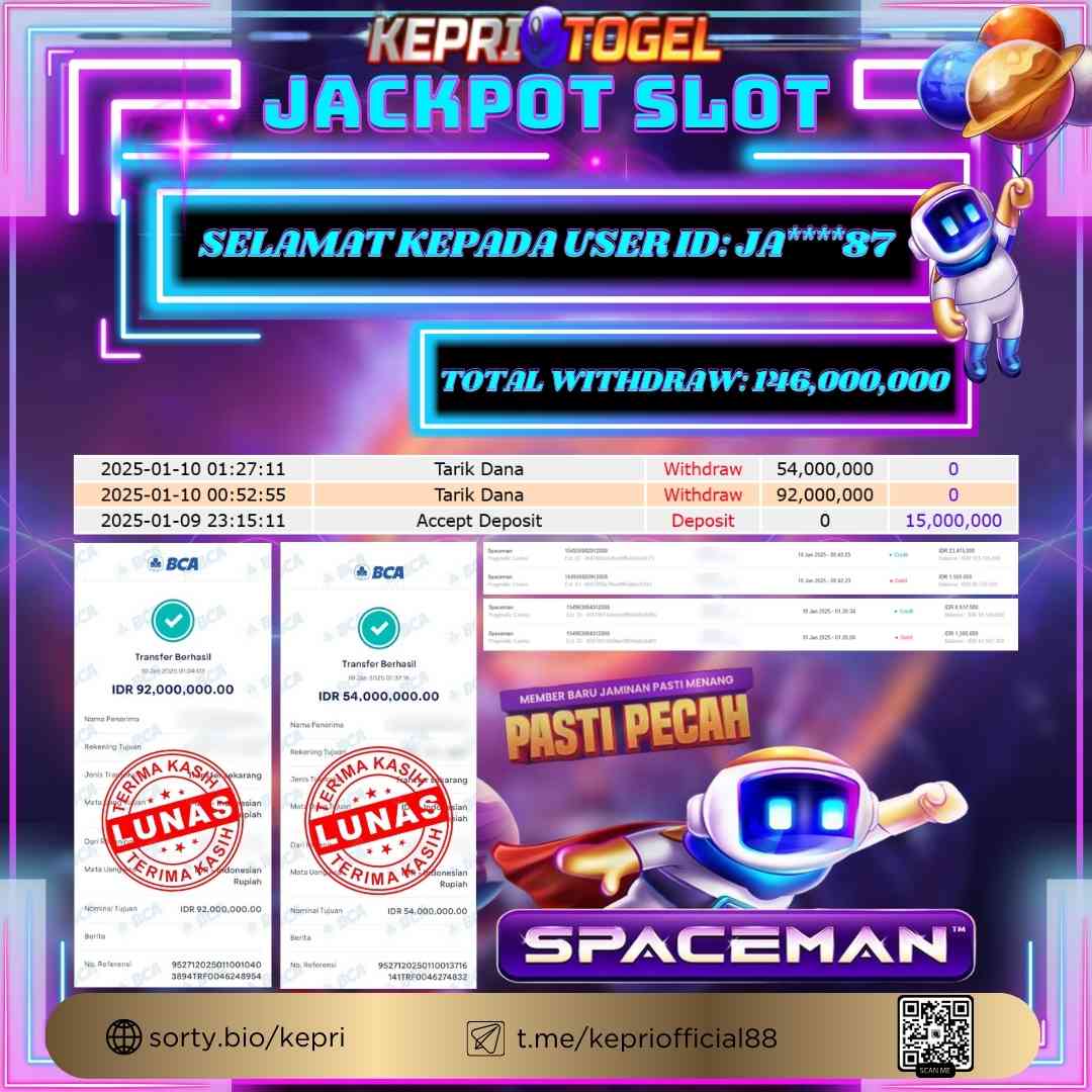 Kepritogel Jackpot Slot SPACEMAN Rp146,000,000