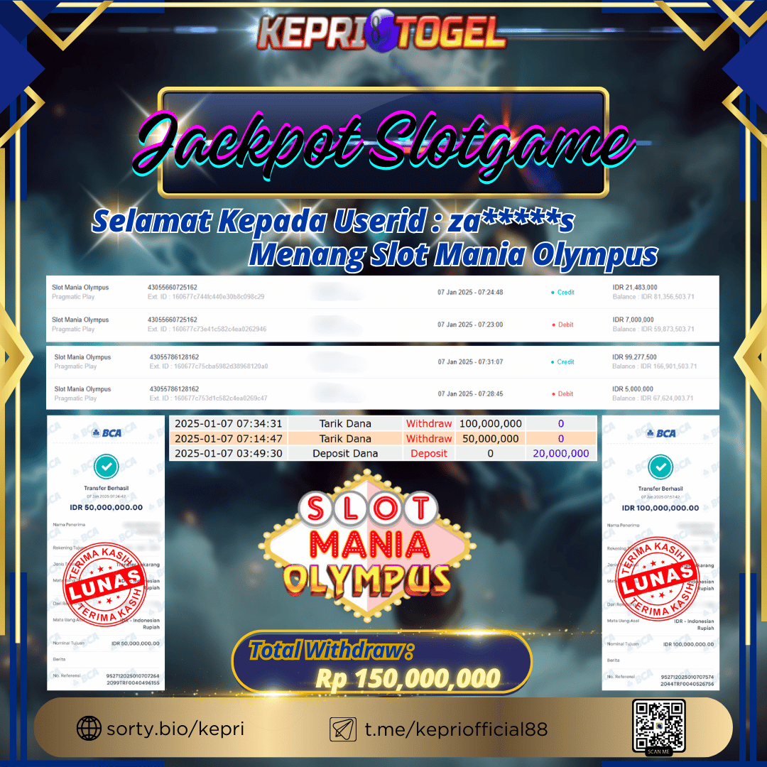 Kepritogel Jackpot Slot Mania Olympus Rp150,000,000