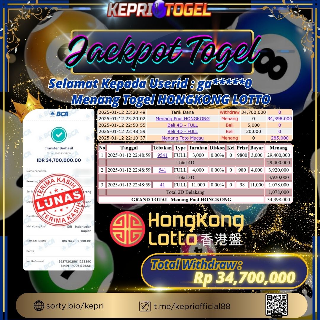 Kepritogel Jackpot Togel HONGKONG LOTTO Rp34,700,000