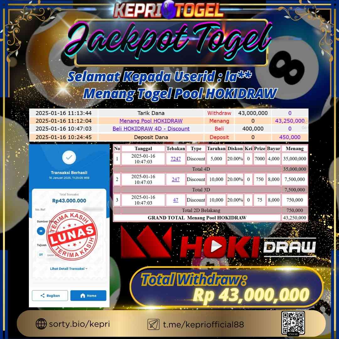Kepritogel Jackpot Togel HOKIDRAW Rp43,000,000