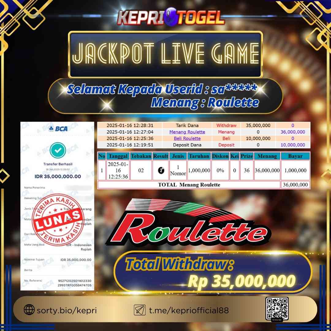 Kepritogel Jackpot Live Game Roulette Rp35,000,000