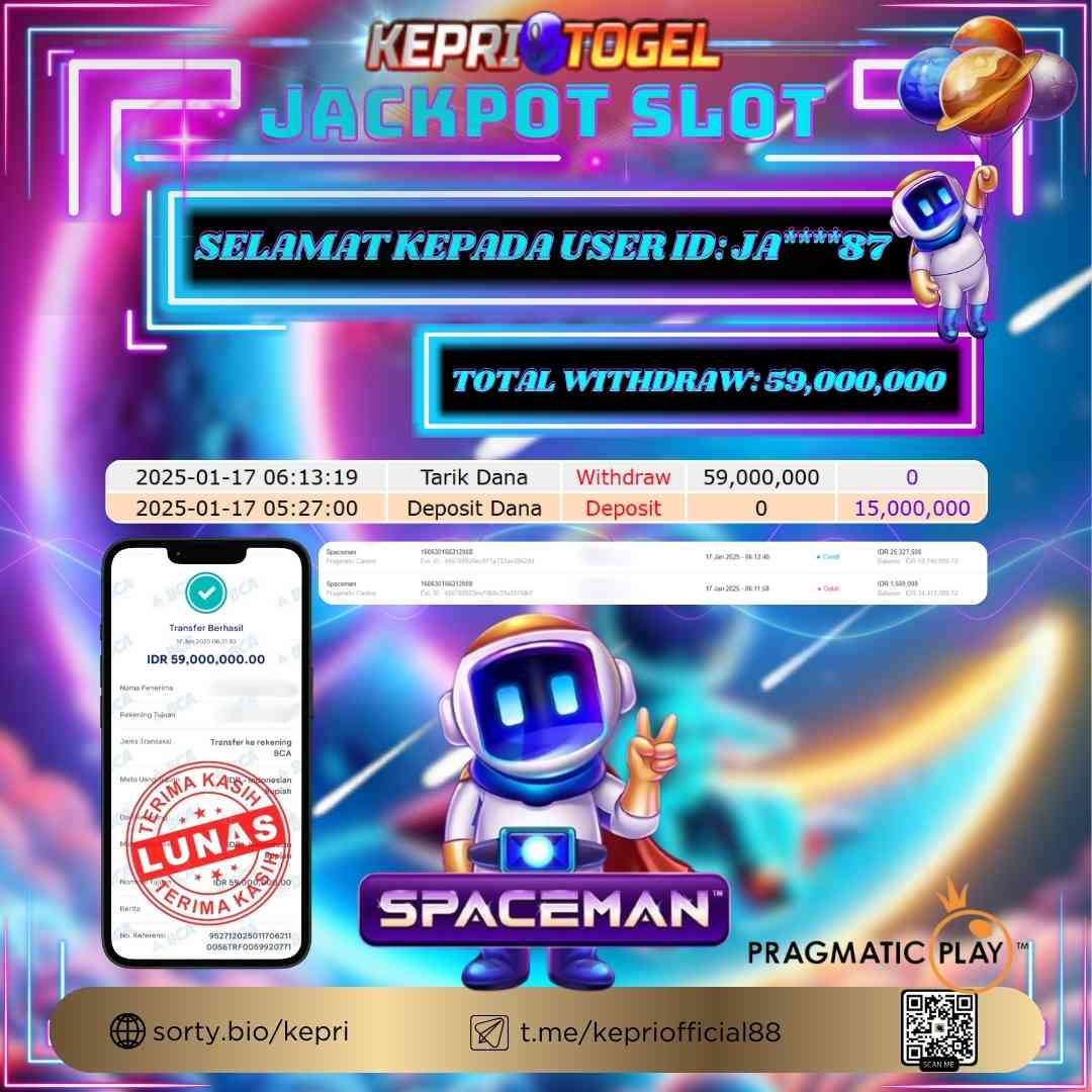 Kepritogel Jackpot Slot SPACEMAN Rp59,000,000