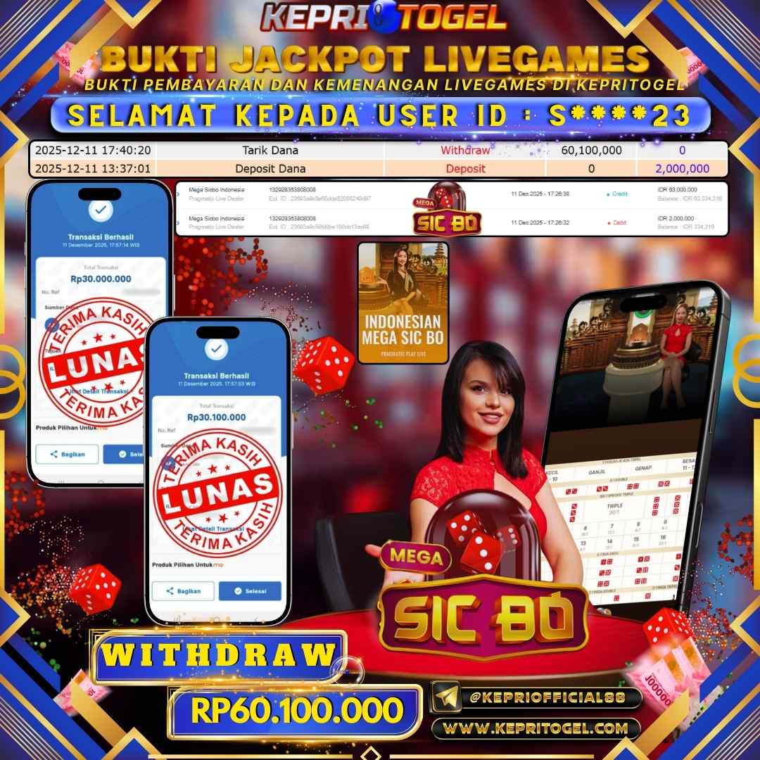 Kepritogel Jackpot Live Game Mega Sicbo Indonesia Rp60,100,000