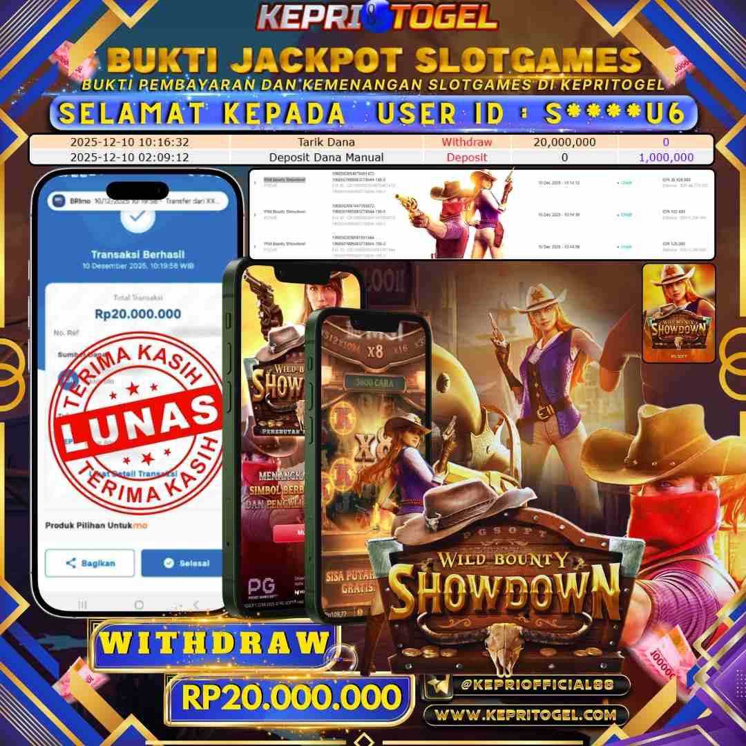 Selamat kepada UserId S****U6 telah berhasil mendapatkan kemenangan jackpot pada permainan Slot Wild Bounty Showdown Kepritogel sebesar Rp20,000,000,- . Kepritogel situs terpercaya sejak dulu hingga saat ini , Untuk kemenangan berapapun pasti akan kami bayarkan . Jangan ragu bermain di Kepri Togel . Kami pihak Kepritogel Menyampaikan terima kasih kepada seluruh member Kepri Togel yang telah Percaya dan setia Bersama kami bermain di Kepritogel hingga saat ini.