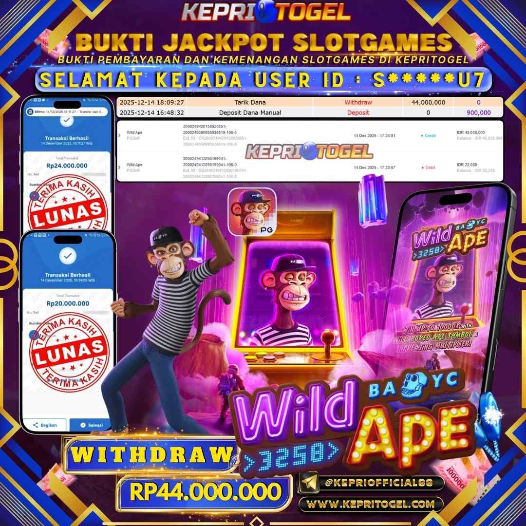 Kepritogel Jackpot Slot Wild Ape Rp44,000,000