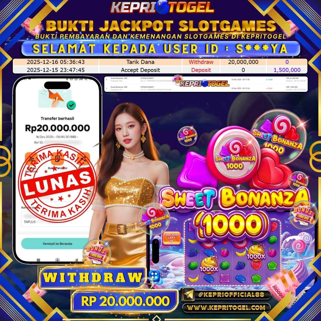 Selamat kepada UserId S***YA telah berhasil mendapatkan kemenangan jackpot pada permainan Slot Sweet Bonanza 1000 Kepritogel sebesar Rp20,000,000,- . Kepritogel situs terpercaya sejak dulu hingga saat ini , Untuk kemenangan berapapun pasti akan kami bayarkan . Jangan ragu bermain di Kepri Togel . Kami pihak Kepritogel Menyampaikan terima kasih kepada seluruh member Kepri Togel yang telah Percaya dan setia Bersama kami bermain di Kepritogel hingga saat ini.