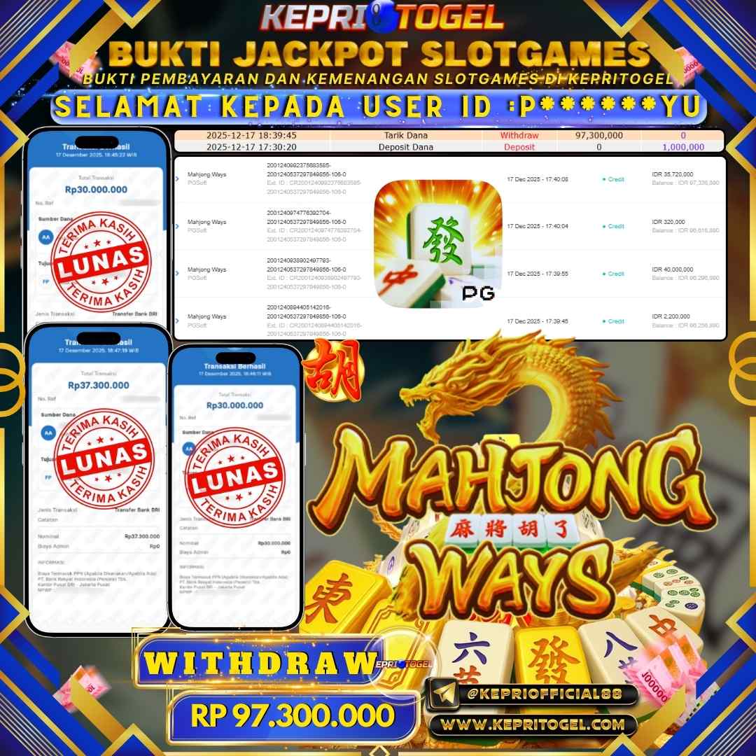 Kepritogel Jackpot Slot Mahjong Ways Rp97,300,000