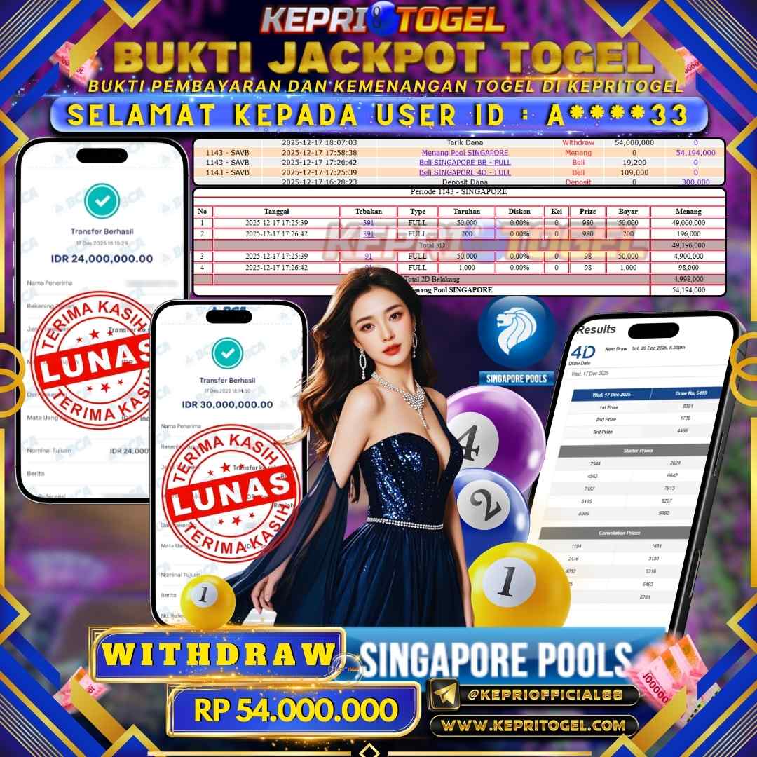 Kepritogel Jackpot Togel Singapore Pools Rp54,000,000