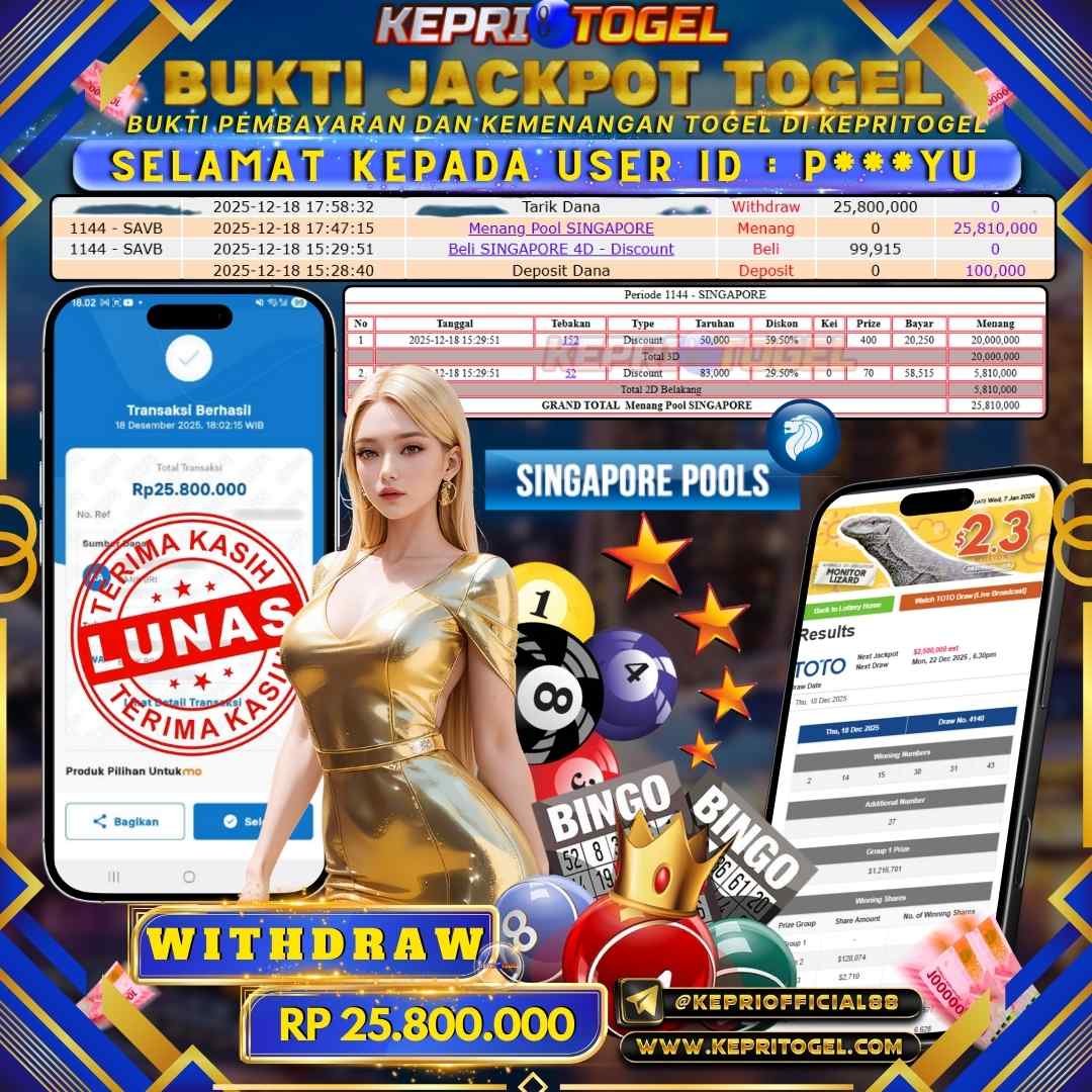 Kepritogel Jackpot Togel Singapore Pools Rp25,800,000