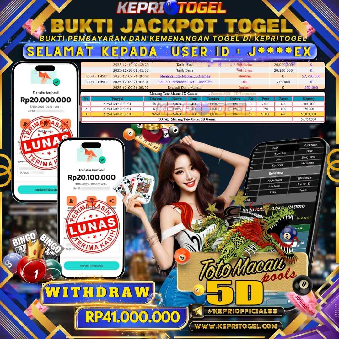 Kepritogel Jackpot Togel Toto Macau 5D Rp41,000,000