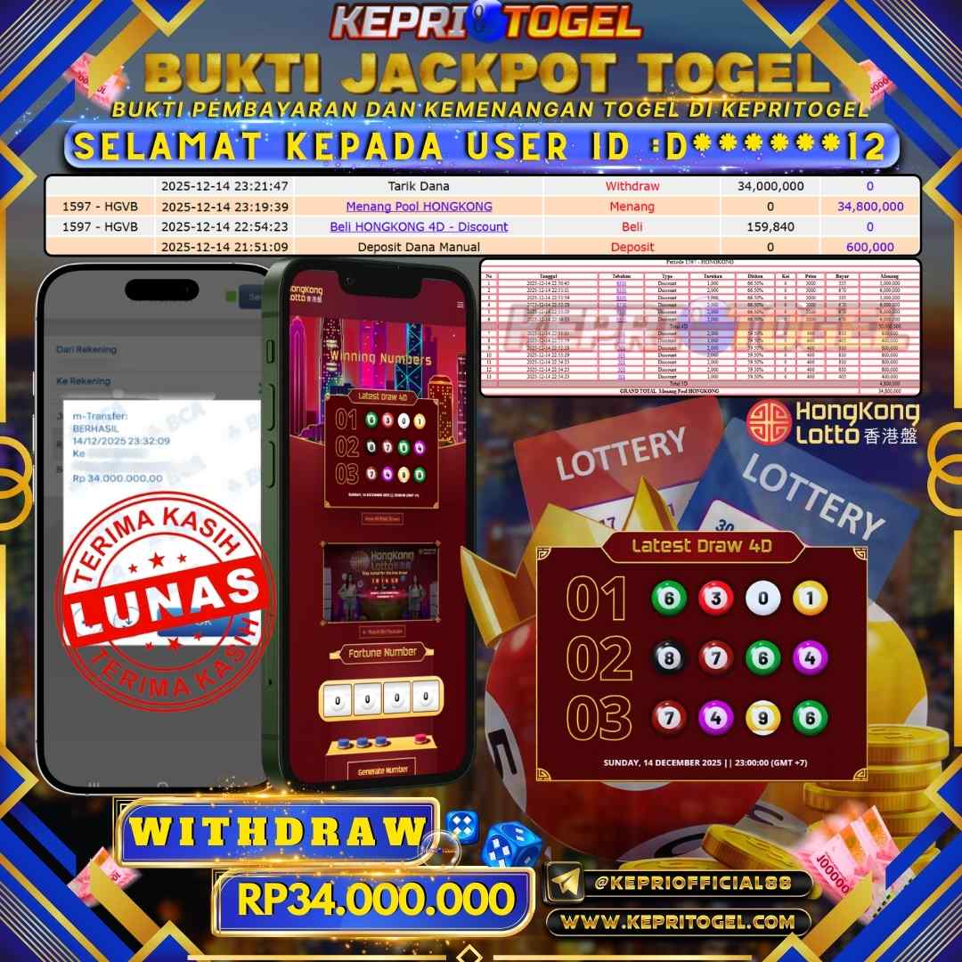 Kepritogel Jackpot Togel Hongkong Lotto Rp34,000,000