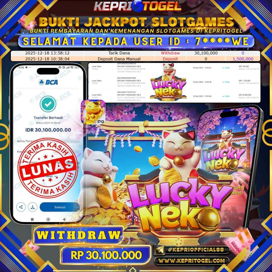 Kepritogel Jackpot Slot Lucky Neko Rp30,100,000