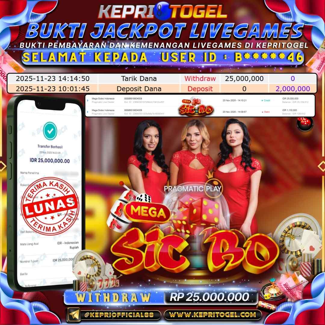 Kepritogel Jackpot Live Game Mega Sic Bo Rp25,000,000