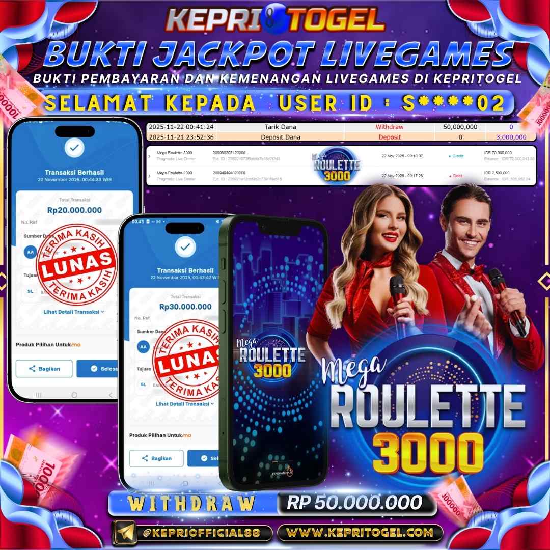 Kepritogel Jackpot Live Game Mega Roulette 3000 Rp50,000,000
