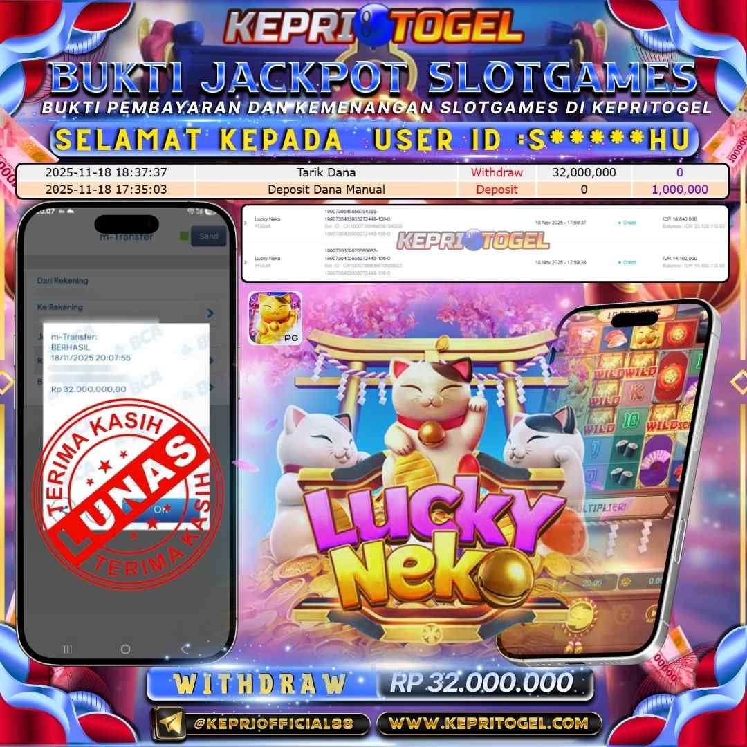 Kepritogel Jackpot Slot Lucky Neko Rp32,000,000