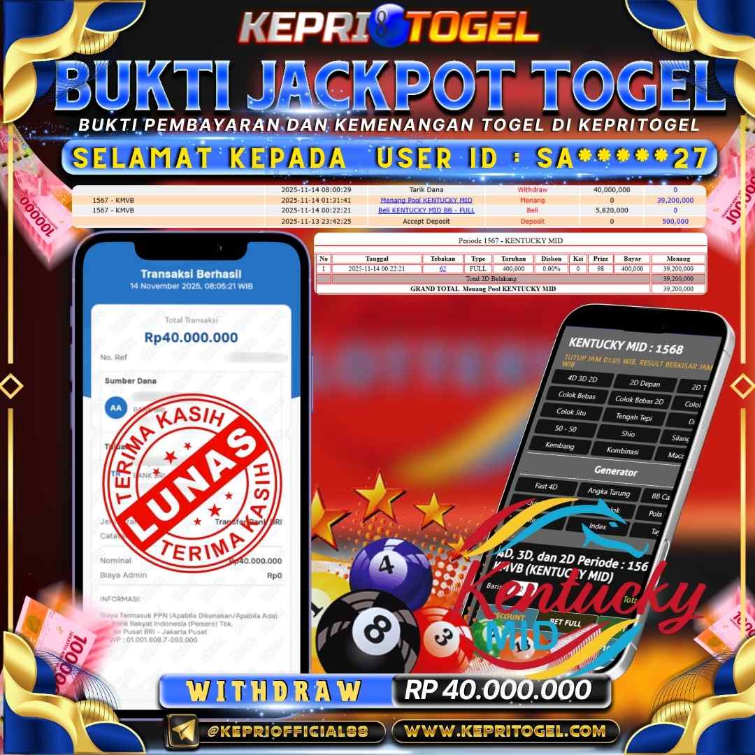 Kepritogel Jackpot Togel Kentucky Mid Rp40,000,000
