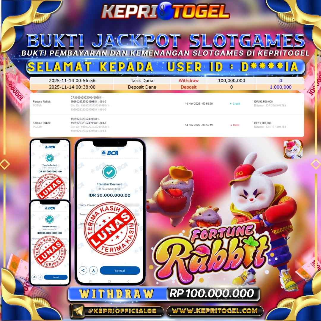 Kepritogel Jackpot Slot Fortune Rabbit Rp100,000,000