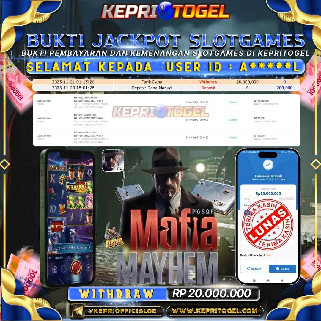 Kepritogel Jackpot Slot Mafia Mayhem Rp20,000,000